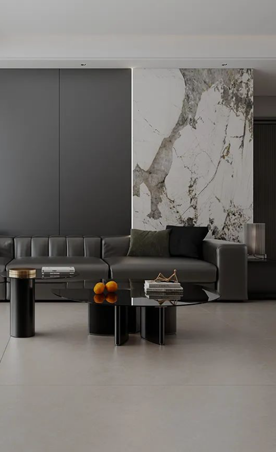 750X1500mm黃金規(guī)格,結(jié)合柔和暖灰延伸空間的視覺(jué)感同時(shí),將客廳設(shè)計(jì)與美好自然組合,復(fù)刻原石經(jīng)歷歲月后的真實(shí)肌理,為空間營(yíng)造輕松治愈的舒適氛圍。